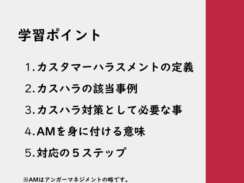 カスタマーハラスメントに対して、相手の怒りに振り回されず適切な対応をするために、また対応後に必要以上の怒りを抱えないための施策を学びます。