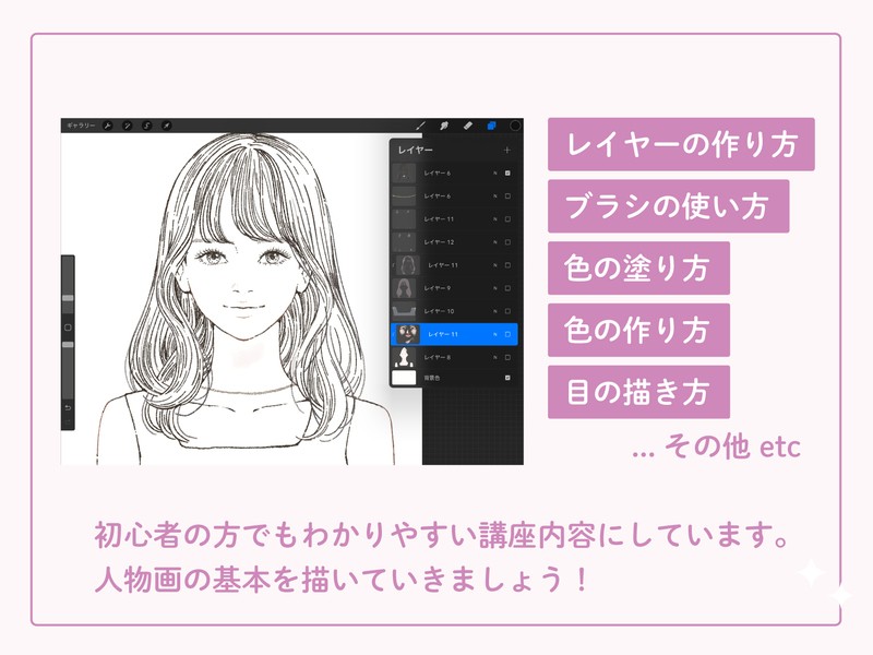人物画デジタルイラストの基本を練習する講座です