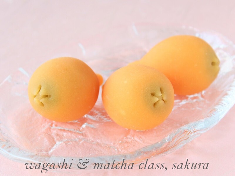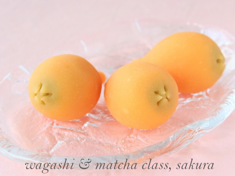 本物のような「びわ」をういろう生地で!抹茶味の村雨を入れた寒天のお菓子「早苗田」で初夏を表現♪簡単なお抹茶点て&試食つき
