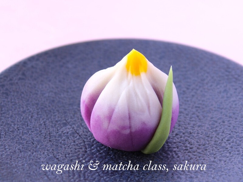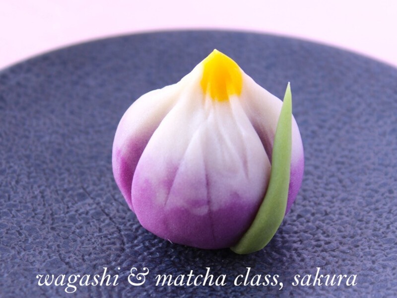 初夏の花「菖蒲」を美しいグラデーションの練り切りで!ひらりとした花びらを美しく表現します♪ 作ったら簡単なお抹茶を点てて試食タイム