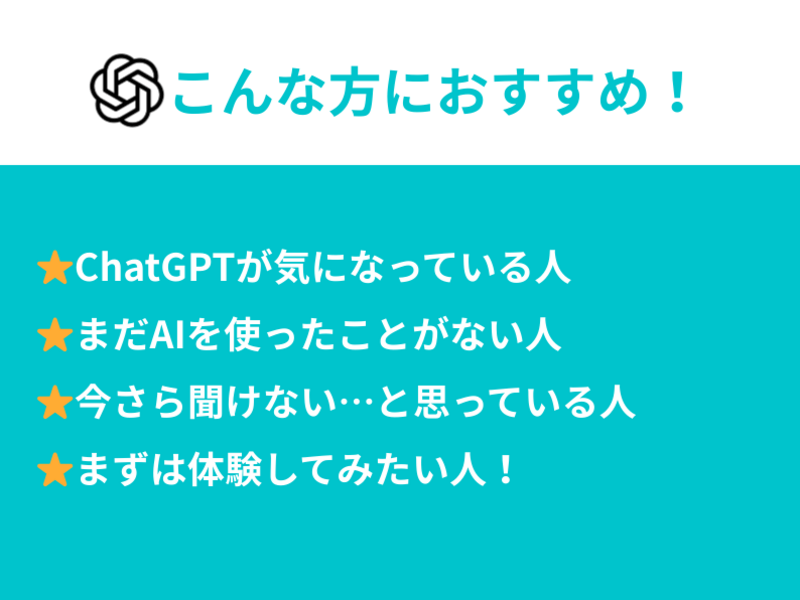 これまではチャットGPTをほんの少し触った程度で、何をどうしたらいいのか、どこから使えばいいのかなどわからなくてモヤモヤしていましたが、この講座を受けたら広がりを感じてワクワクしました。