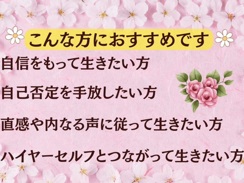話しかけ易く親しみやすい穏やかな先生で、安心出来ました。ハイヤーセルフについて分かり易く説明して頂けました。ハイヤーセルフにしてみた4つの質問で、頭では思いつかなかった答えが返ってきて、ハイヤーセルフなのかと近しい気持ちが湧いてきました。呼吸と自分自身を信頼することがとても大切だと気づくことが出来ました。