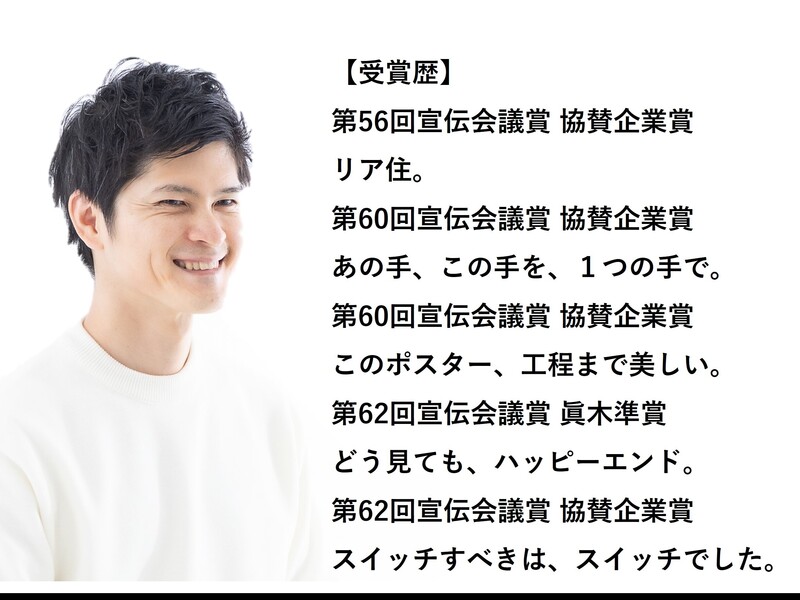 主にブランディング領域で活動。タグラインやステートメント、企業理念、商品ネーミング、採用コピーなど幅広く手がける。中央大学で「キャッチコピーの書き方講座」の講師経験。著書『逆引きキャッチコピー事典』