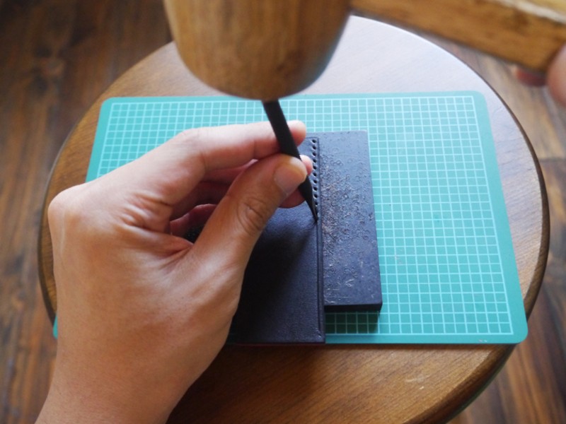 革の裁断、縫製、コバの処理を分かり易くレクチャーいたします。