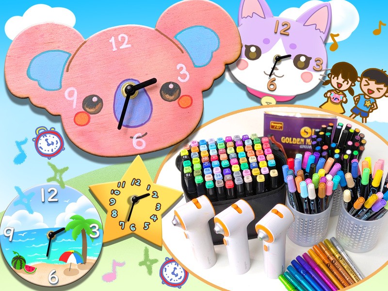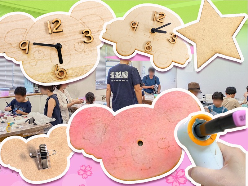 木製のプレートに好きな色で色を塗って自分だけのオリジナル時計を作ろう!