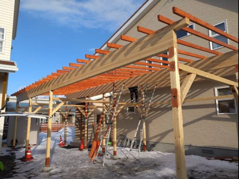幅7m奥行2mのカーポート施工|木工の技術が詰まった講座です。
