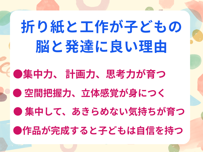 折り紙と工作が大好きな小4の娘が受講しました。直前の予約にも関わらず、色々考えて準備してくださいました。先生は優しく、子供たちの他愛ないおしゃべり(折り紙関係ないことにまで…笑)にも快く対応してくださり、一緒に遊んでくださいました。突然やりたい!と言い出した弟(小1)も参加し、講座は終始和やかに進みました。