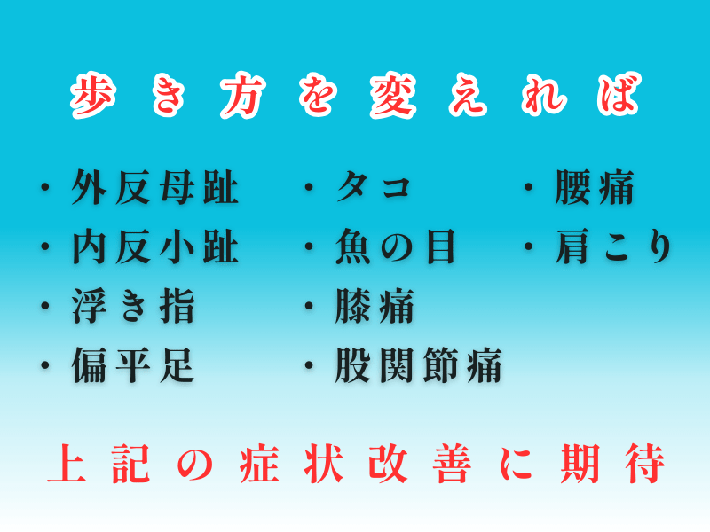 日常の歩き方を工夫することで「以前より歩きやすくなった」と感じる方も多く、テーピングや手術に頼らず続けられるケアを目指しています。