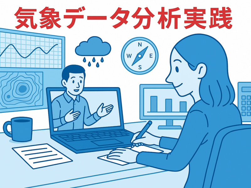 様々なビジネス分野で気象データの活用が進んでいます。この講座では気象庁が発表する様々な気象データを使った実践的なPythonプログラミング学びます。気象データアナリストの補講的な講座の位置づけの講座となります。