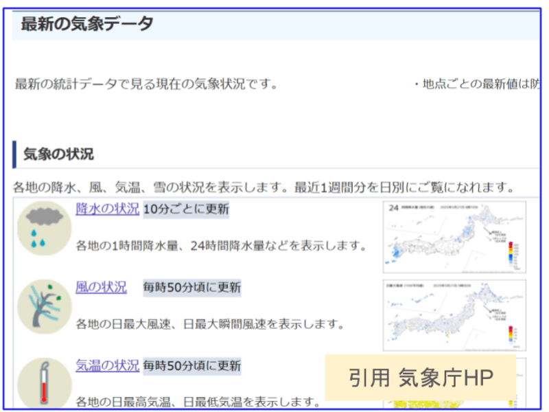 気象庁ホームページから入手可能な