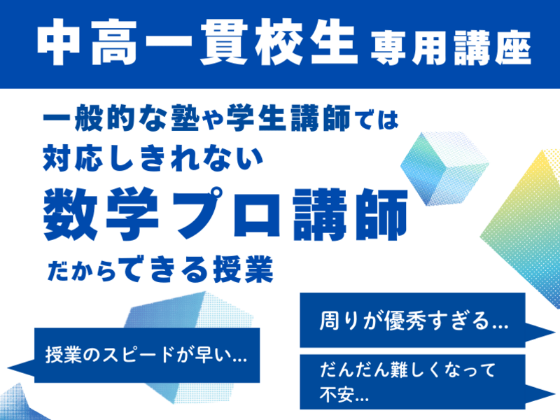 中学生・高校生/個別指導/一般的な塾や大学生講師では対応しきれない数学プロ講師だからできる授業をやります
