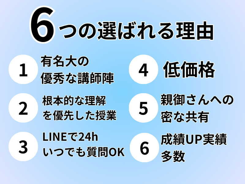 数学の苦手な分野、そして勉強全般についてご指導いただきました。子供はとてもわかりやすく、これから頑張っていきたいと言っていました。ありがとうございました。