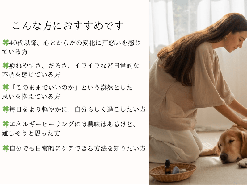 心と身体のバランスを整えたいと思っている40代・50代の方やセラピストさん、占い師さんのようなお仕事をしている方にこそぜひ受けていただきたい講座だと思います!本当にありがとうございました。