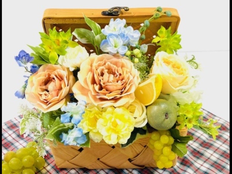 新緑に包まれたこの時期は自然の美しさを感じながら心を豊かにする絶好のチャンスです。ピクニックバスケットをイメージしてフラワーレッスンをします