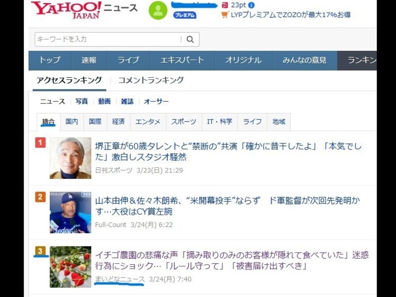 特に力を入れているのがネットニュースへの記事執筆。Yahoo!ニュースの場合、1日に約7,500本の記事が配信される中、アクセスランキング40位以内に何度も入っています。