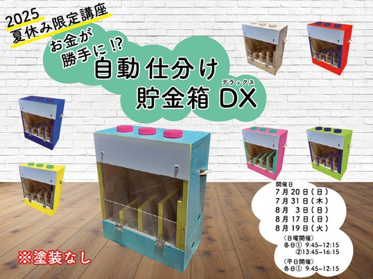 この夏の特別講座では、3年前に行った人気作品「自動仕分け貯金箱」がデラックスバージョンになって帰ってきます!