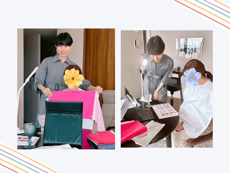 ネット情報である程度わかることはありますが、毎日鏡を見ていても客観的に自分をみるのは難しいものです。プロに自分自身の雰囲気を見てもらいながらパーソナーカラーの視点から"私に似合う"を教えてもらえる有意義な時間でした。ありがとうございました。