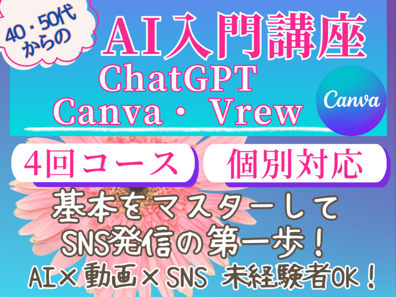 基本操作からAIを活用した役立つスキルまで、実践的な内容の講座です。