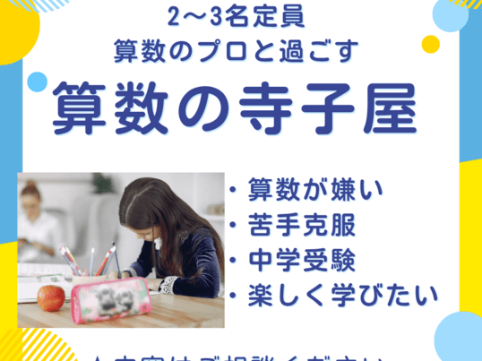 算数のプロが超少人数(定員3名)でしっかり学習指導!苦手分野強化OK!講師にお任せ内容でもOK、受験塾の算数教材持ち込みもOK
