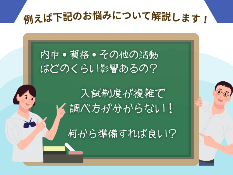 ・大学受験で、年内入試を受ける高1~3生・既卒の方、保護者の方におススメです。