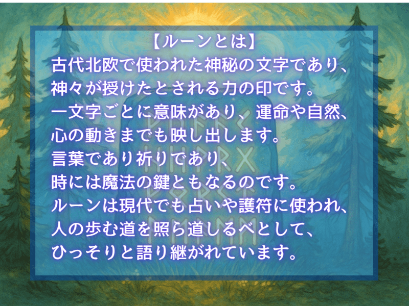 ルーンの秘められたエネルギーや魅力を学ぶ事が出来ました。