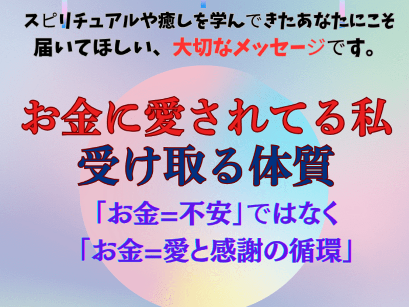 この講座でお金に対して向き合ってなかったことに気づきました。私は お金というエネルギーとちゃんと向き合えてなく無意識に過ごしていたことに気づきました。今回のこのワークでまだまだ未解決はありますが、未来に向けて光が見えてきた感じがします。扉が開かれた感じで、ちゃんと向き合っていこうと思います。先生ありがとうございます。そしてこれからもよろしくお願いします。