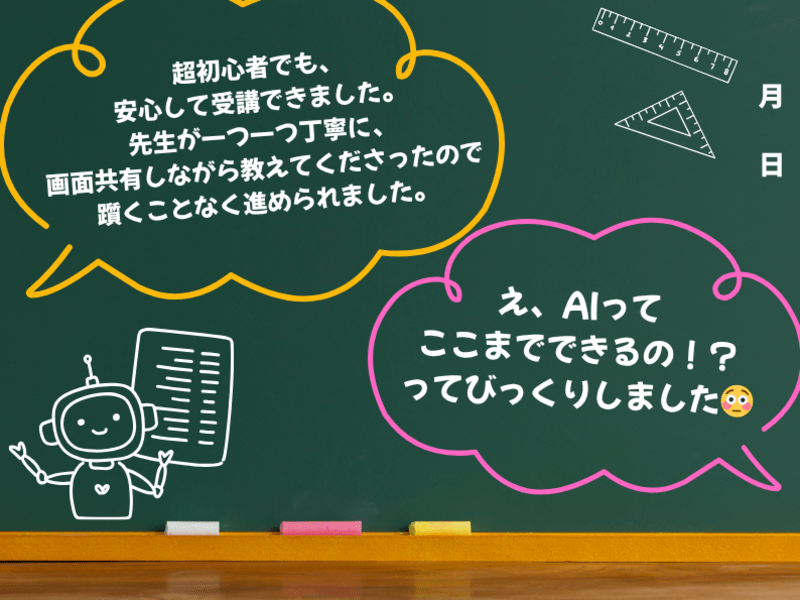 チャットGPTという言葉は知っていましたが、どう使うのか、そもそも自分に使いこなせるのか不安だらけでした。しかし、この講座はまさに私のような超初心者向けで、安心して受講できました。先生が一つ一つ丁寧に、画面共有しながら教えてくださったので、躓くことなく進められました。簡単な文章作成や情報収集に役立つことが分かったので、仕事で少しずつ活用していきたいと思います。もっと早く受ければよかったです!
