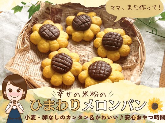 見た目から可愛いひまわりメロンパンで、子どもたちも可愛いと喜んでいました。これが米粉で作れるのは楽しい。習って良かったです。