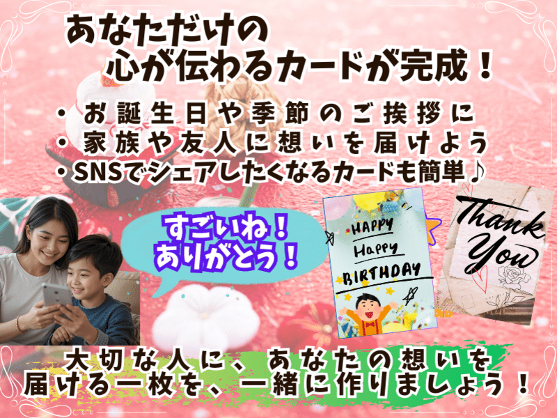 「完成した年賀状を娘に渡したら『お母さん、これ自分で作ったの!?すごい!』って本当に驚いて。孫の写真を使って、世界でたった一枚の年賀状ができたことが、何より嬉しかったです。娘が『これからも楽しみにしてるね』って言ってくれて、私の新しい生きがいになりました」