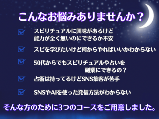 私は元々霊感があるほうですが、それをどうにかするとかはできず、チャネリングを学びたいと思い、初受講しました。