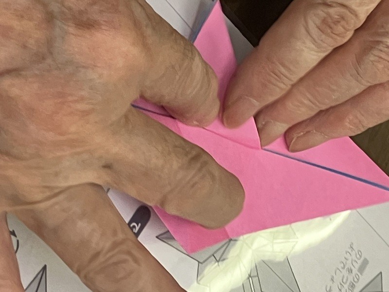 折り方説明を聞きながら折り紙を折っていきます