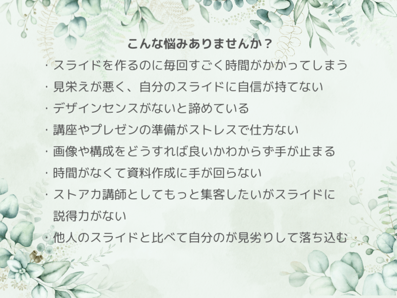 ✅ 「もうスライドで悩まない!」という安心感と自信