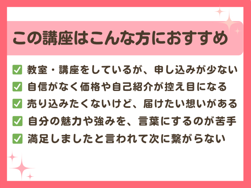 この講座は、あなたの想い、ステージ、お悩みにぴったり合わせた