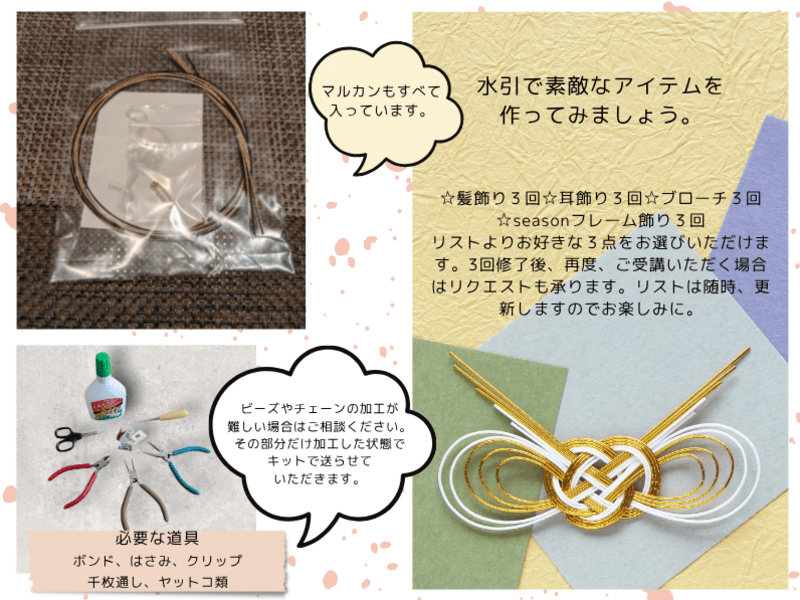 この講座では、ハンドメイド🔰50分で結べる水引