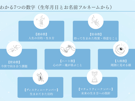 数秘鑑定では、生年月日からその人の性格・価値観・行動パターン・人生の流れが読み解けます。