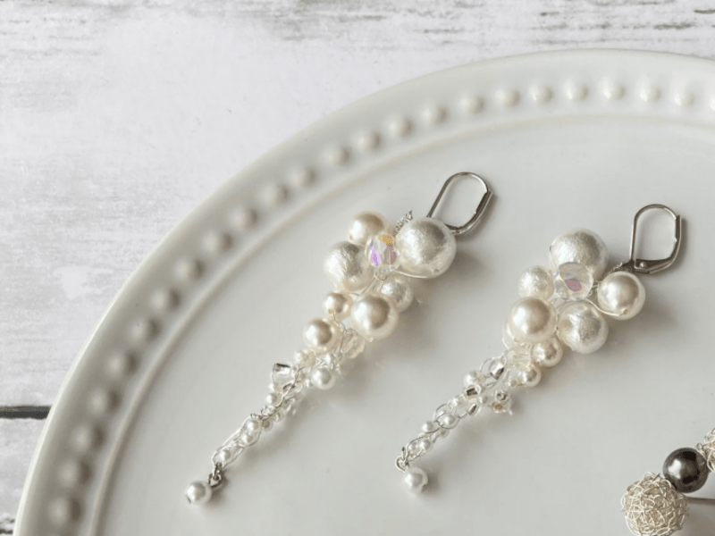 ワイヤーを編むことを体験し、軽くてキラキラのピアスかイヤリングを作ります。