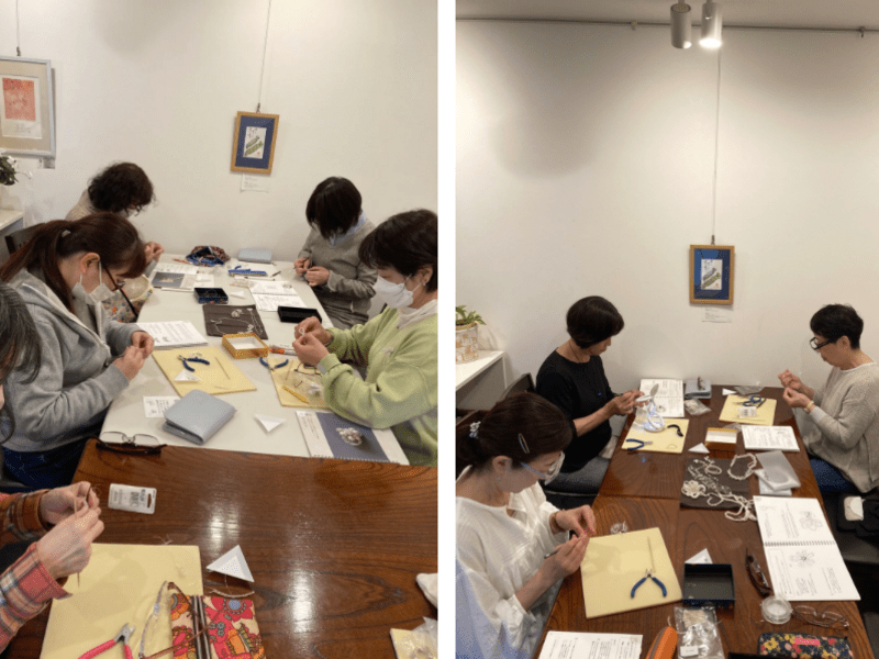 ワイヤーでビーズを編むというのが想像がつかず、作品をみてまずびっくりでした。そして私が作れたこともびっくり!(かなり先生に助けてもらいましたが、、、)