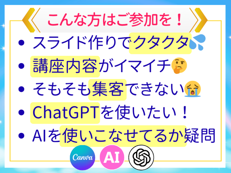 時短・省エネしで講座準備&集客✨チャットGPT他、使えるAIやCanvaの活用方法をご紹介✨講座設計・資料作成・集客文・対応力UPの秘訣✨