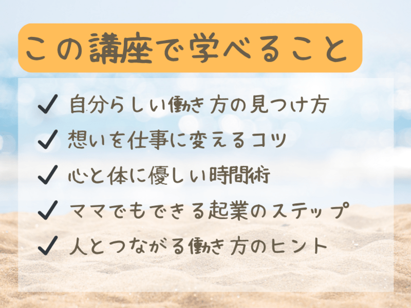 働き方に悩むママ本人はもちろん、パートナーとして理解を深めたい男性にもおすすめの講座です!!