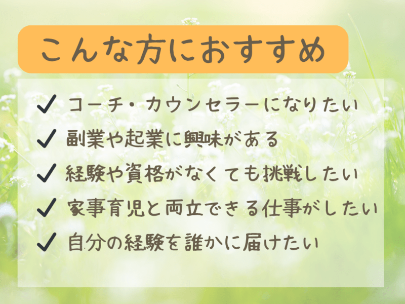 コーチングに興味がありましたが、どのようにお仕事に繋げるのか、何をしたらいいか分かりませんでした。そこで入門講座を受けさせていただきました。以前、先生の腸活講座も受けさせていただき、やりたいことで楽しく発信されている先生を見て自分もやってみたいと思いました✨