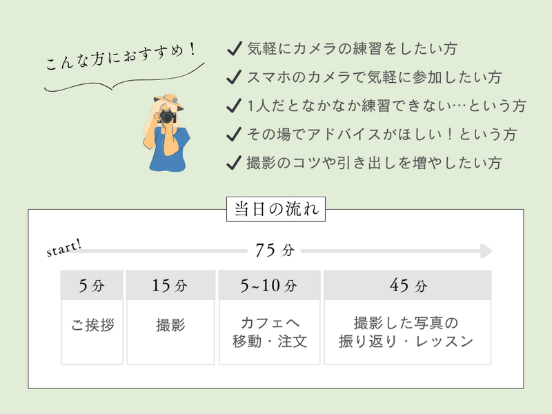 全く知識がない方や、写真が苦手な方でも、丁寧にお伝えします。