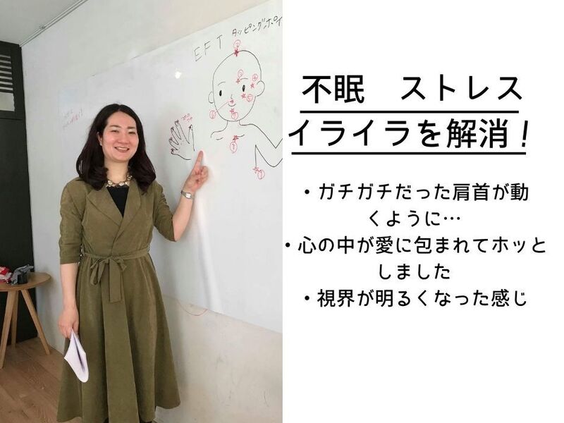 人をそっと優しく包み込んでくださる先生のお人柄と、分かりやすく丁寧な説明でEFTを実際に体験できたのが、とても良かったです。