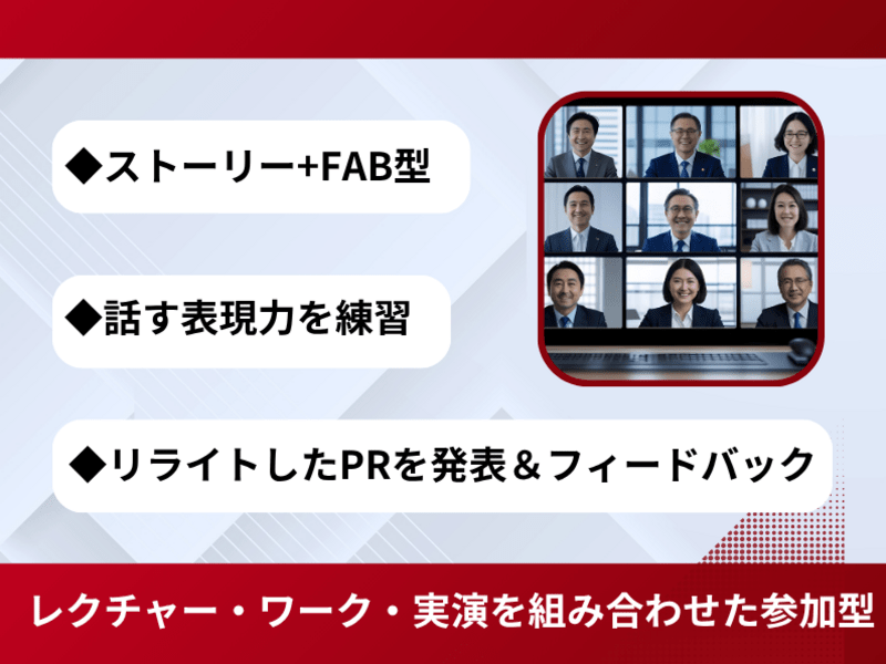 実際に型を教えていただけるのでそれに当てはめて考えると、今までのと全然違って、印象に残る自己紹介ができました。