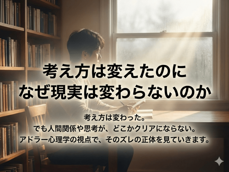 本や講座で学び、考え方は変わったはずなのに、現実がどこかスッキリしない。その理由を、アドラー心理学の視点から丁寧にひも解いてくれる講座でした。