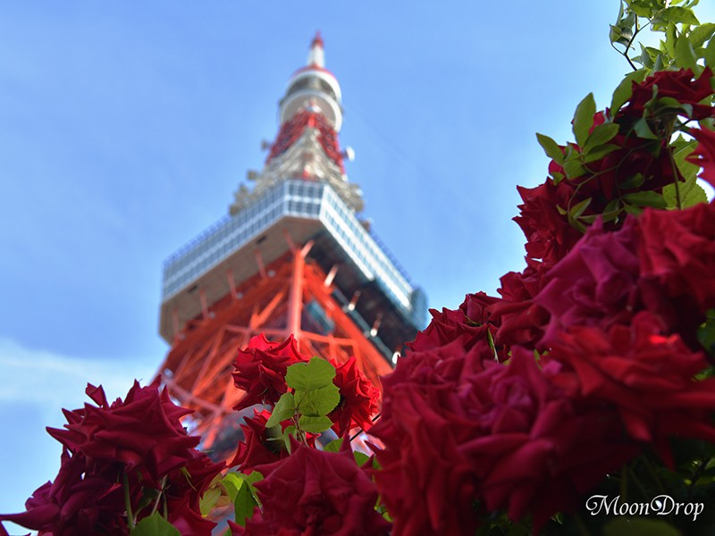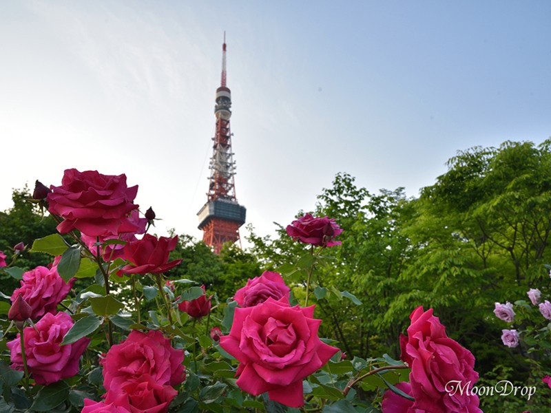 東京タワーの周辺には、たくさんのバラが咲く美しい公園があり、東京タワーとバラのコラボ撮影を楽しむことができます。