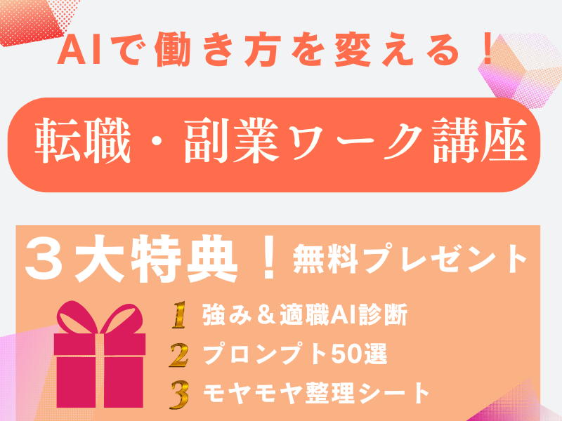 今後の講座開設に活用できる状況に応じた50個のプロンプトや、モヤモヤ整理ワークシートをアフターメッセージでいただき、これらを参考に進めていければと思っています。