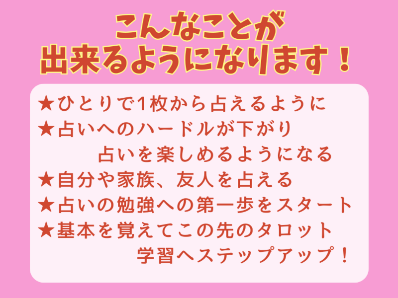 まずは22枚の大アルカナから教えてもらえるので私にはとても合っていました。