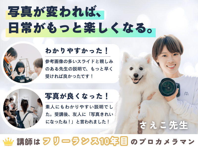 前回に引き続き学ばせていただきましたが、今回はさらに深掘りしてとてもわかりやすく教えていただけたので、講座が終わる頃には既に撮影するのが楽しみだなと思っていました。
