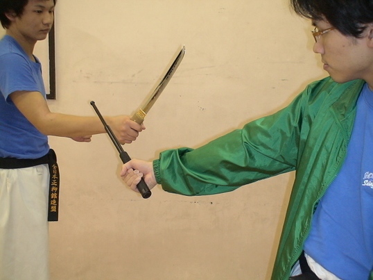 警棒や短棒、その他護身用具を使った護身術が体験できる講座です