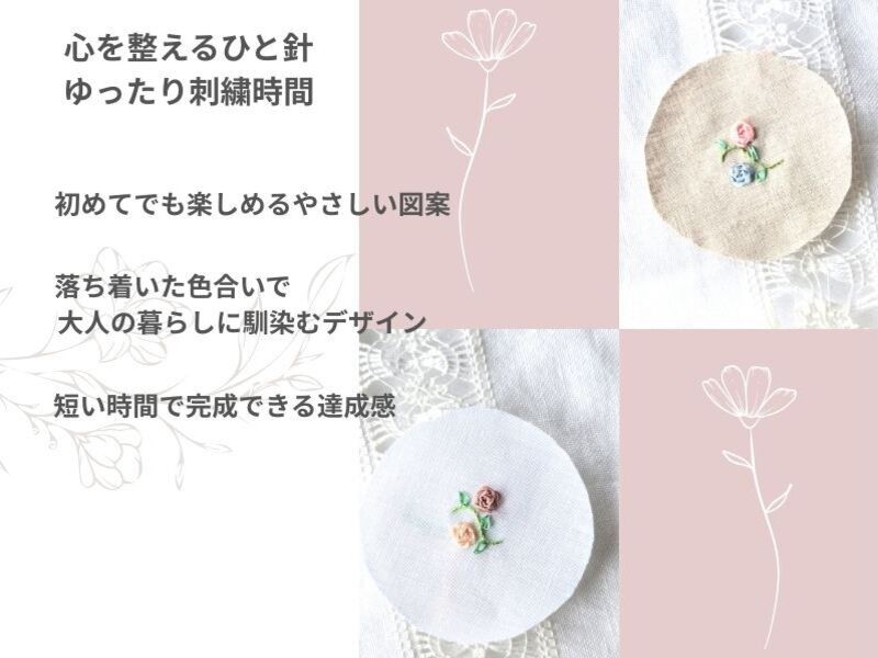 私のレッスンではそんな疑問をちょっとしたコツや技術で解決して、今までよりもスムーズに刺繍が楽しめるようにサポートいたします。